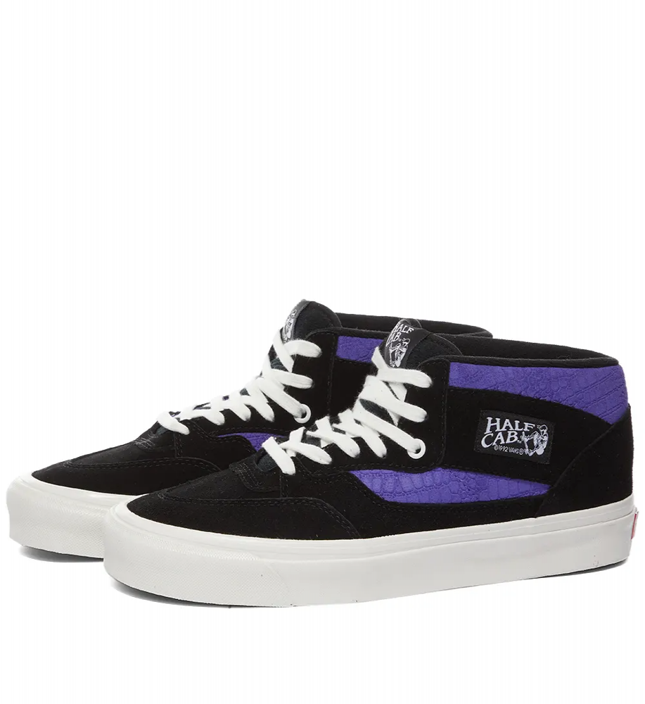 Vans tetap setia pada estetika skate all-American dengan sepatu kets Half Cab 33 ini. Ditata dalam warna hitam, bagian atasnya dibuat dari suede, kemudian didetailkan dengan motif buaya ungu di dinding samping untuk tampilan yang unik. Detail lainnya tetap sama seperti biasanya, dengan pita foxing mengkilap yang lebih tinggi dan outsole karet gum.